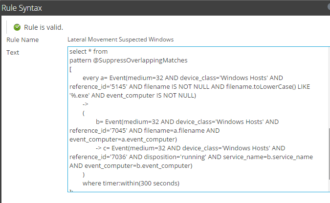 Figure 7. Lateral Movement Suspected ESA Rule Syntax Details.