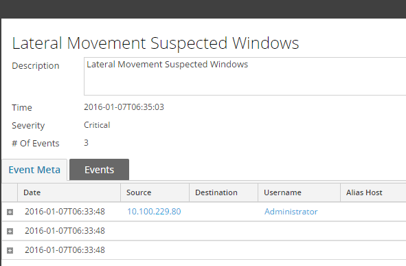 • ESA Rule: Lateral Movement Suspected Windows