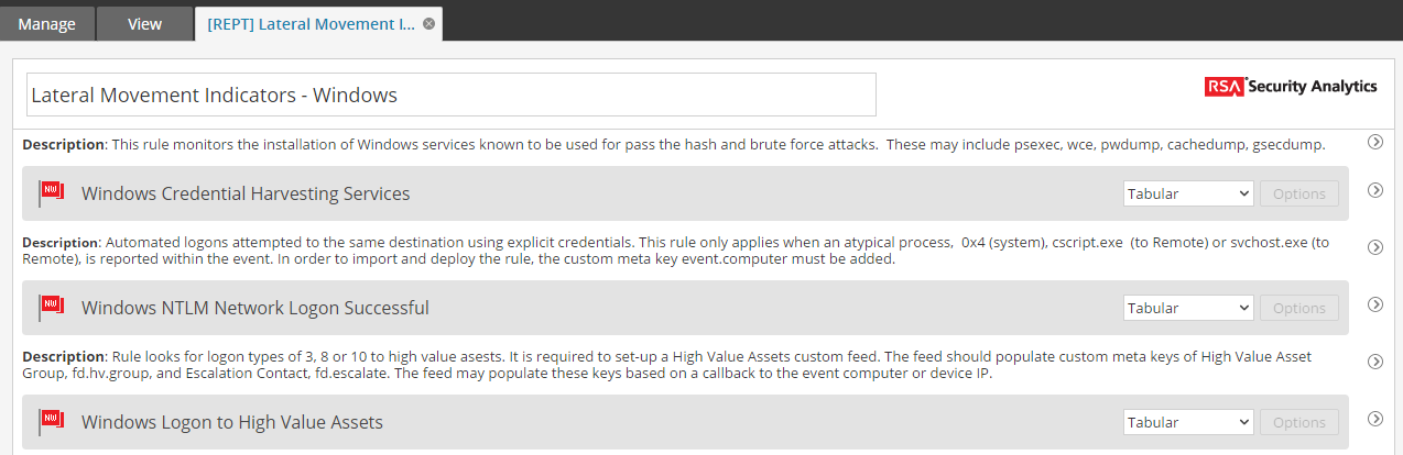 Figure 3. Details of the rules used in the Lateral Movement Indicators - Windows report.