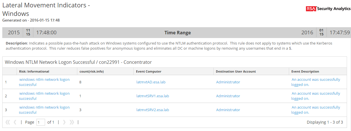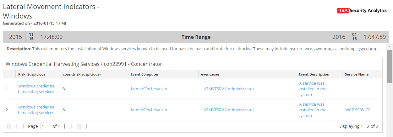 This report displays the possible indicators of lateral movement on Windows systems by displaying the results of the 2 application rules described earlier within this document.