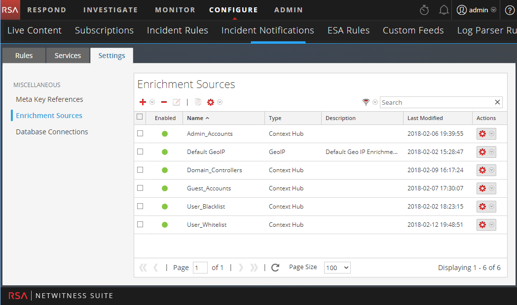 Select the Settings tab, then Enrichment sources.
