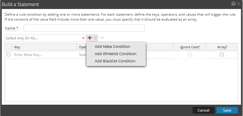 You can add a whitelist, blacklist, or meta condition. This procedure details adding a list, so choose either: