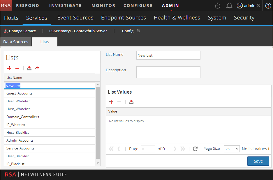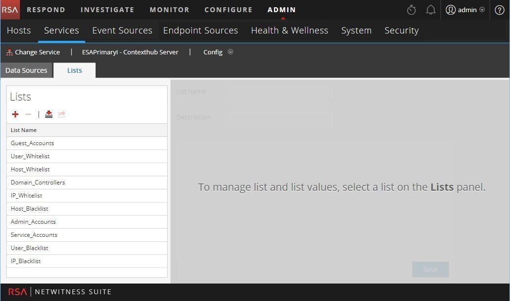- Investigate: "Manage Context Hub Lists and List Values" topic in Investigate topic in the NetWitness Investigate User Guide