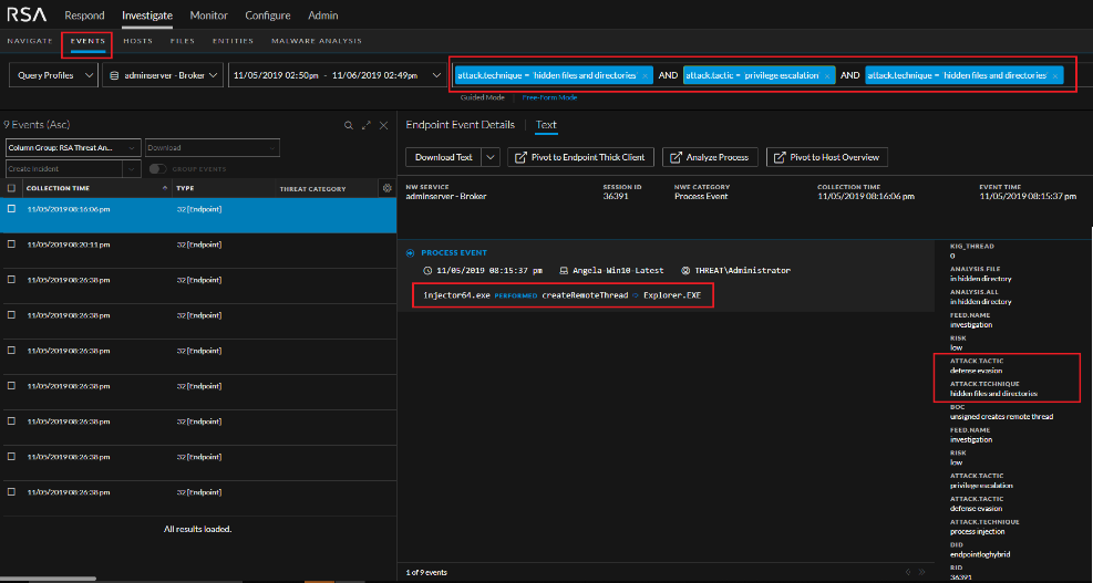 Analysts can query on a specific MITRE ATT&CK technique to investigate further.