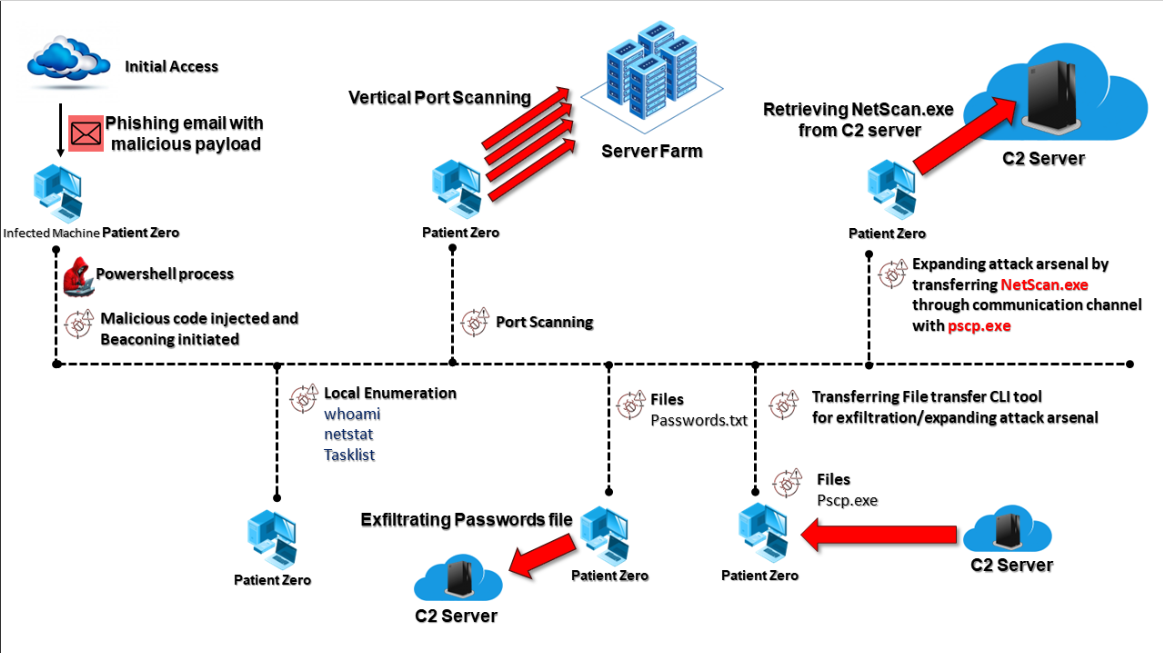 Below diagram summarizes the intended actions on objectives by the attacker.