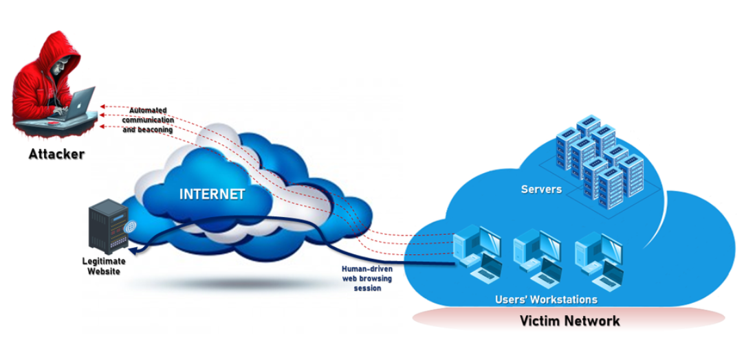 > Frequent and repetitive network communication with external IP addresses having low variance with respect to the payload size. - Abnormal behavior by an endpoint process.