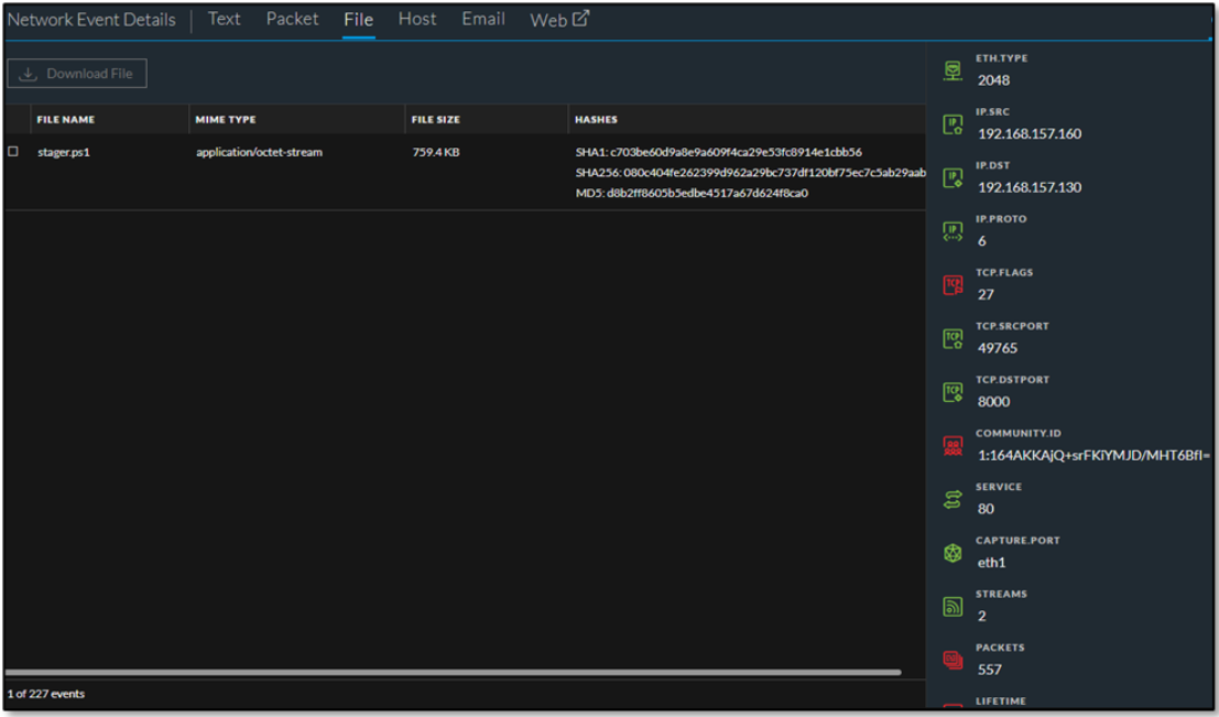 Also, the content of that PowerShell script could be analyzed, as the file was transmitted through unencrypted cleartext HTTP.